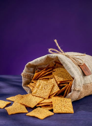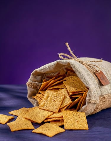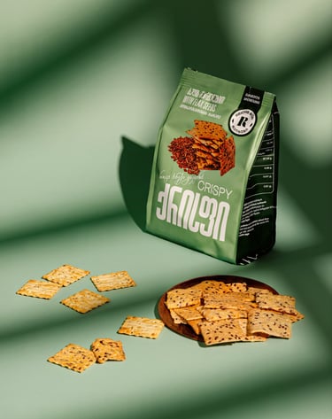 სელის მარცვლები და ყვითელი სიმინდი ერწყმის ქრისფის დაუვიწყარ, ხრაშუნა ტექსტურას