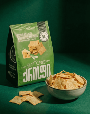 არომატული ყველი და ხახვის ფანტელი ერწყმის ქრისფის კლასიკურ, ხრაშუნა ტექსტურას