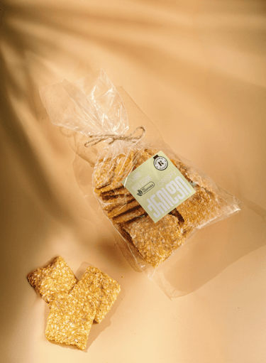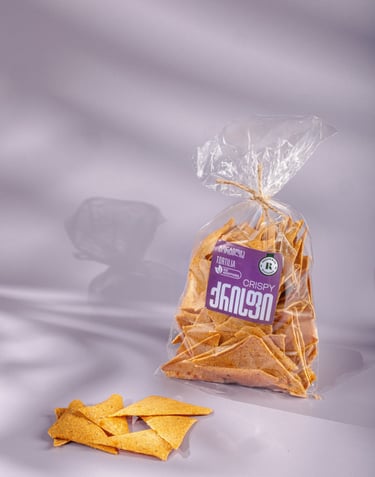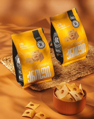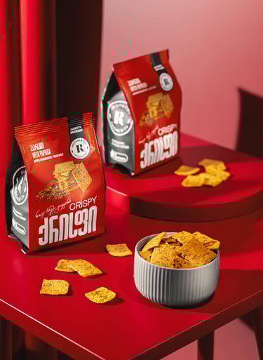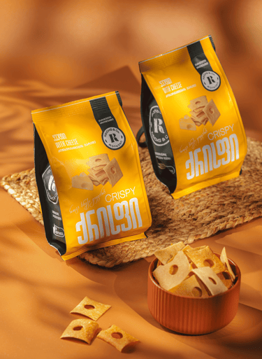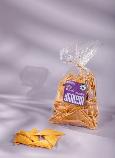 სელის მარცვლები და ყვითელი სიმინდი ერწყმის ქრისფის დაუვიწყარ, ხრაშუნა ტექსტურას
